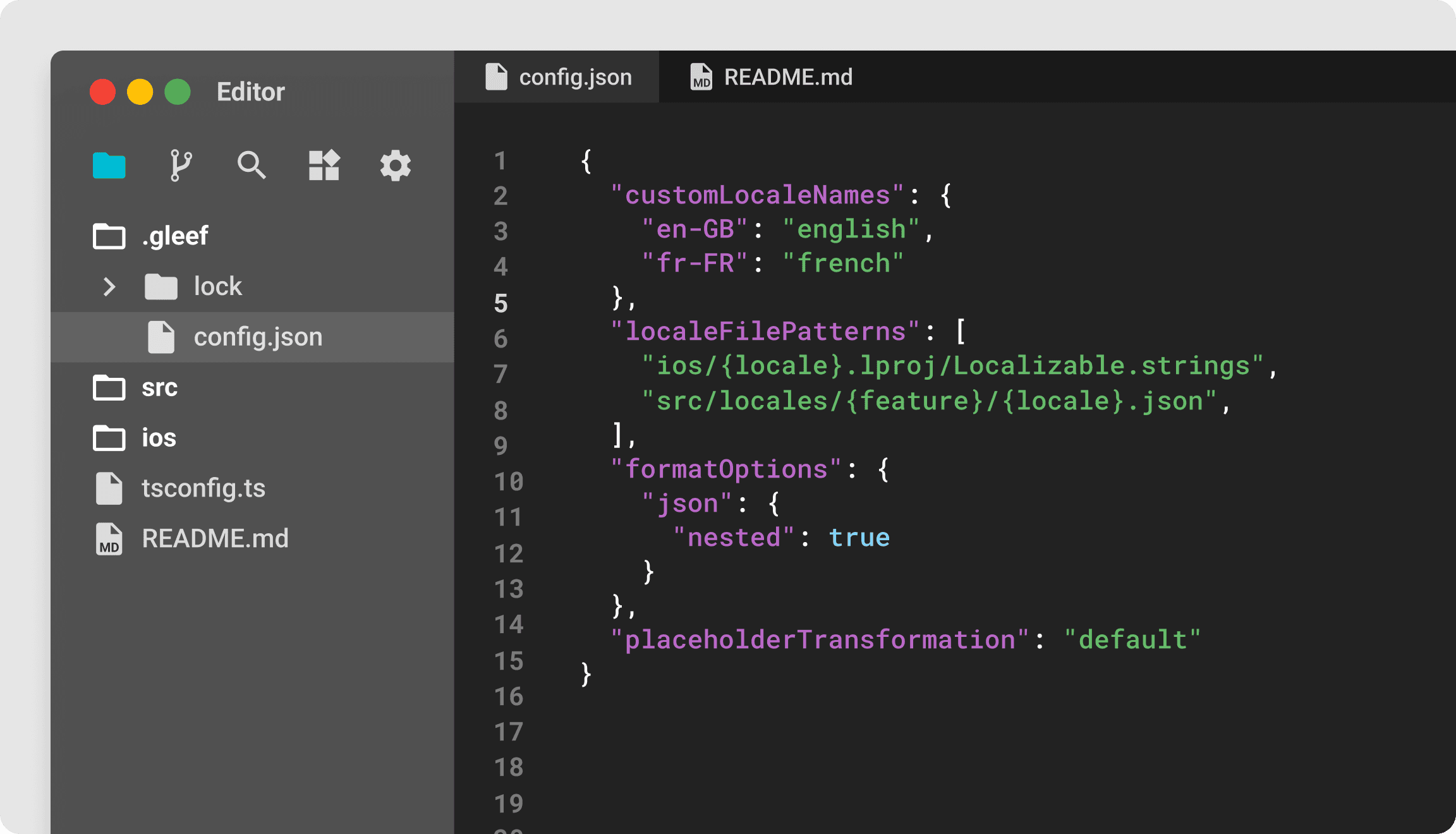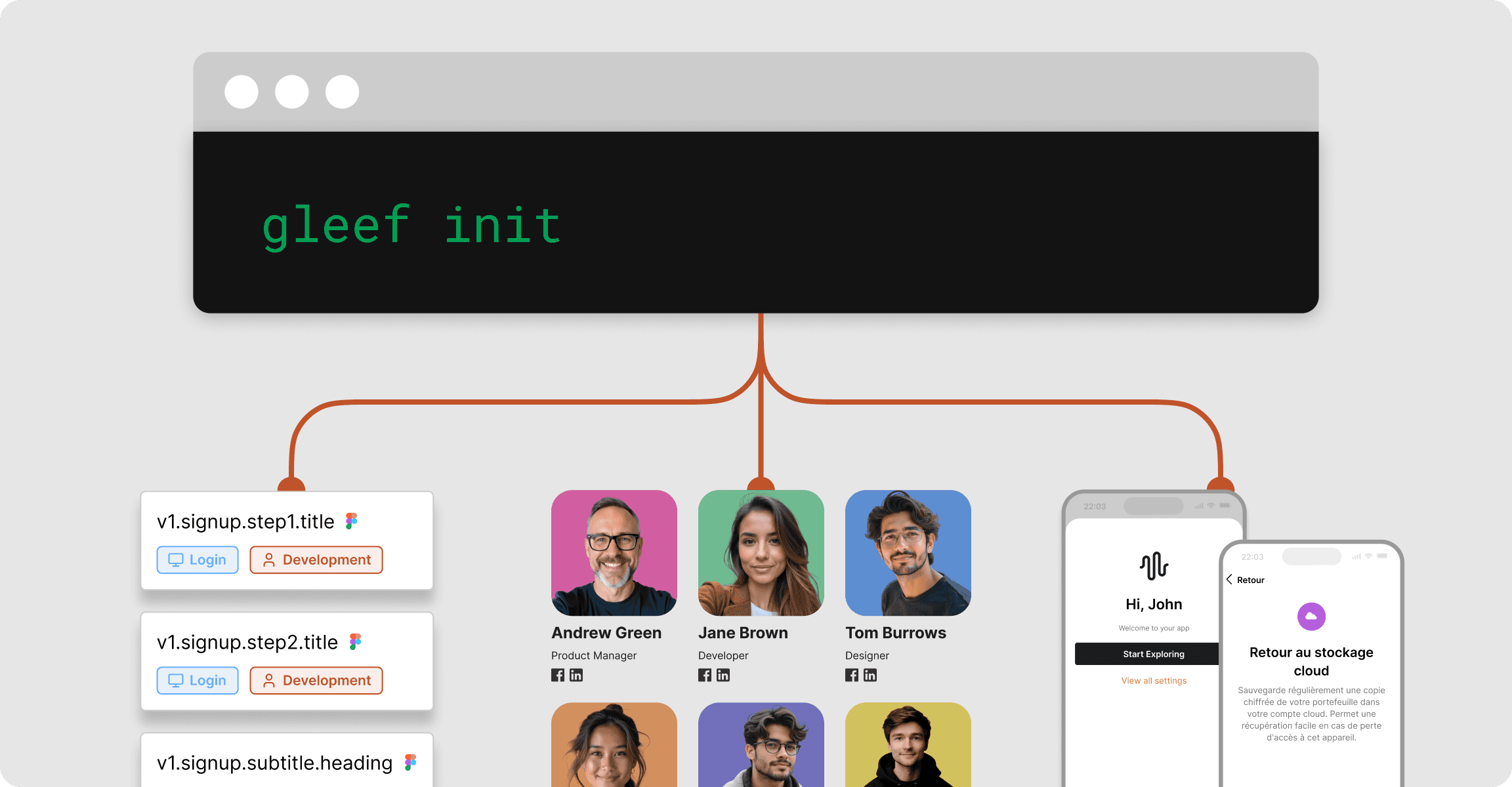 The fastest i18n setup you’ve ever done. Run one command, answer the prompts, and you get a fully ready configuration file for Gleef. Commit it to your repo, and enjoy Gleef accross all of your platforms: generate consistent AI translations, and sync with your team on the Gleef Studio